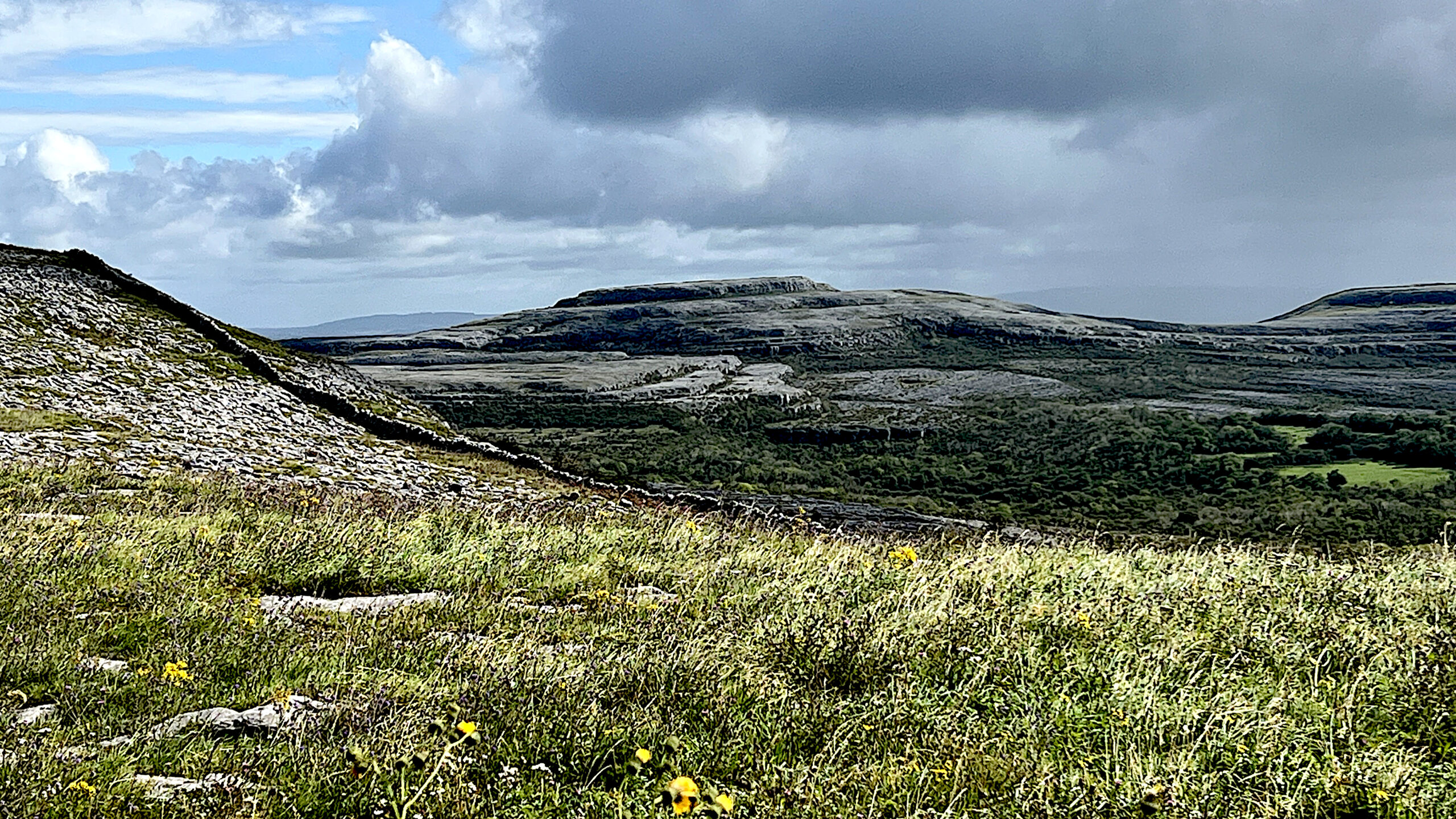 There was a bit of sun in the morning. I dried the tent a little. However, the weather forecast for the rest of the day was not promising. I decided not to ride around the entire peninsula, but to take a shortcut on Burren Road, which leads through a national geopark. At first, however, I couldn’t see any of it.