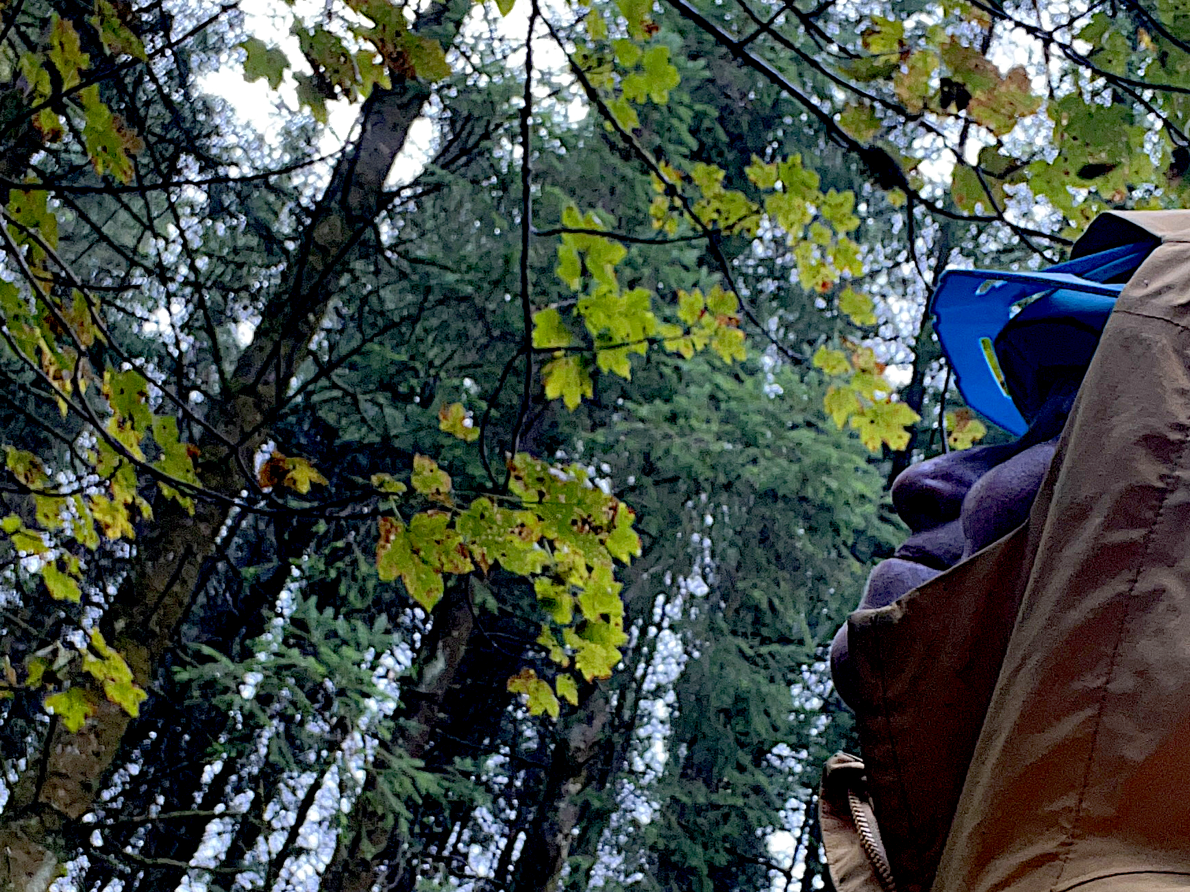 It was getting time to find a place to sleep. But where? Too muddy down at the bottom, too windy up at the top. Just keep going. Finally, I ended up in a place with all kinds of junk, but with the owner’s permission to pitch my tent somewhere. Finally out of my wet, cold shoes!